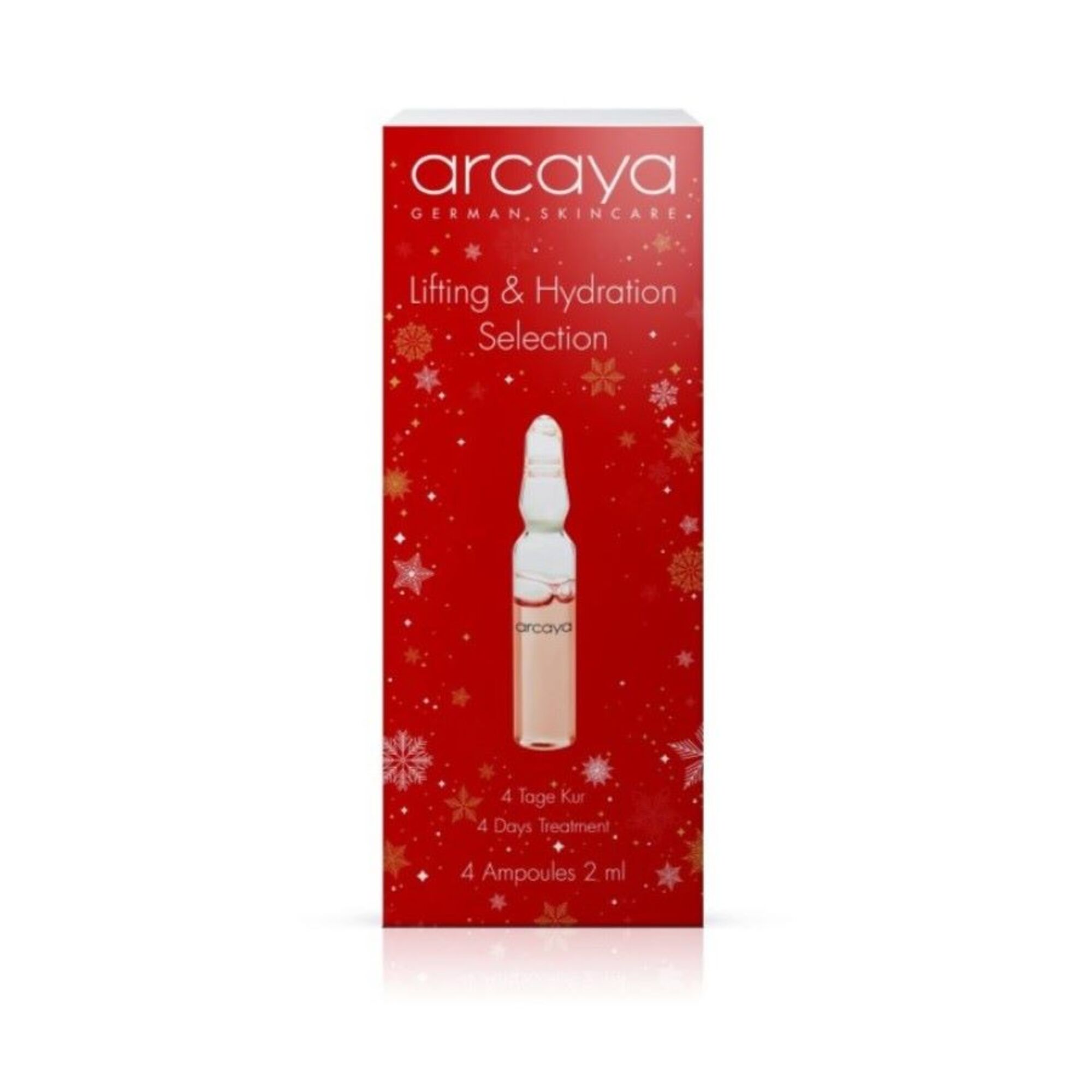 Pflegeprodukte für mehr Feuchtigkeit und Lifting. Es enthält 4 pflegende Wirkstoffampullen. Wir empfehlen die Anwendung als Kur an 4 aufeinanderfolgenden Tagen.