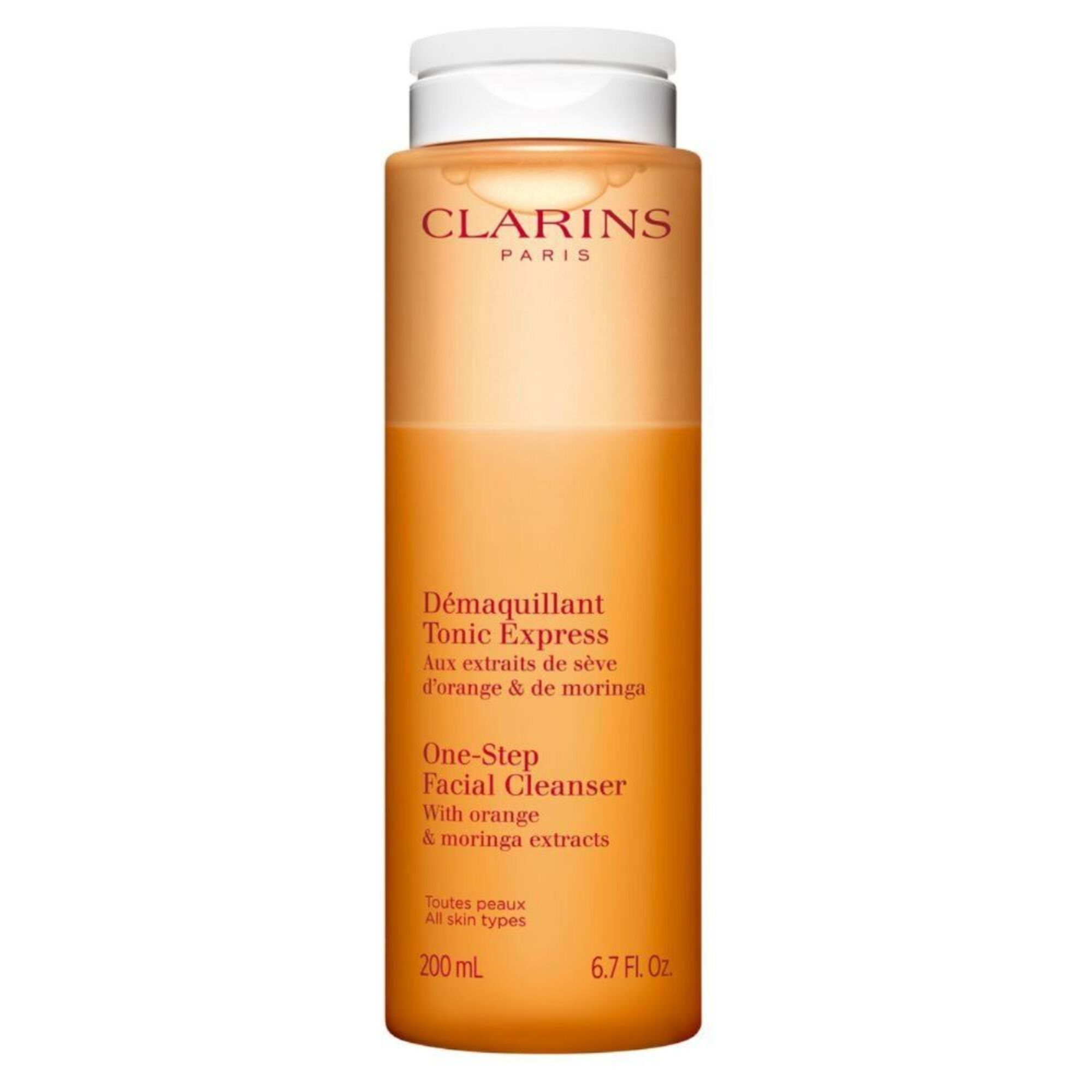 Dieser 2-Phasen-Reinigung ist die perfekte Kombination aus Makeup-Entferner und Gesichtslotion für eine schöne, reine Haut in nur einem Schritt. Diese belebende Gesichtspflege mit Extrakten aus Orange und Moringa entfernt alle Spuren von Makeup, Unreinheiten und abgestorbenen Hautschüppchen. Moringa-Extrakt wird wegen seiner Fähigkeit Schmutzpartikel abzulösen, eingesetzt. Um den ökologischen Fussabdruck zu minimieren, präsentiert Clarins dieses Produkt in einem noch umweltfreundlicher gestalteten Flakon mit einem leichteren Verschluss.