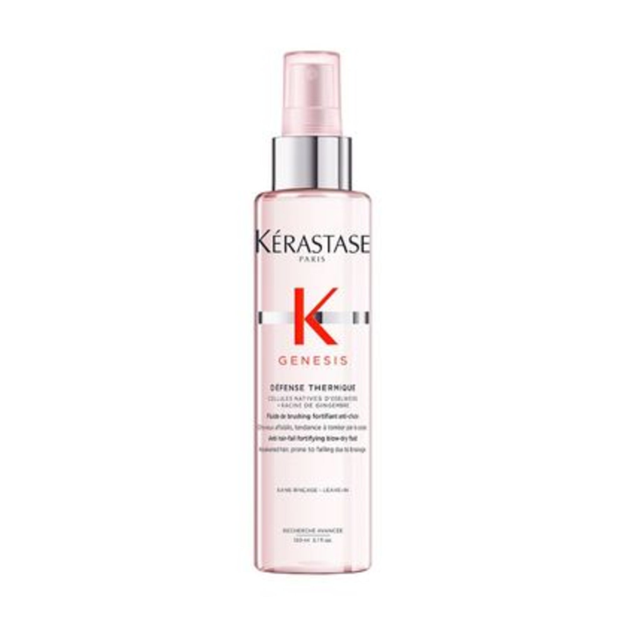 Défense Thermique Genesis von Kérastase ist ein kräftigendes Hitzestyling-Fluid gegen Haarverlust ab der Haarwurzel und Haarbruch. Diese milchige Formel bietet Schutz vor Haarbruch und optimale Feuchtigkeitsversorgung, ohne Frizz und ohne das Haar zu beschweren. Mit der Kombination aus Edelweiss-Zellen und Ingwerwurzel spendet Défense Thermique Feuchtigkeit, stärkt das Haar und schützt es vor Hitze bis 230°C. Das Haarverlustrisiko aufgrund von Haarbruch wird gesenkt, das Haar glänzt, es ist geschmeidig und hat einen seidigen Griff.