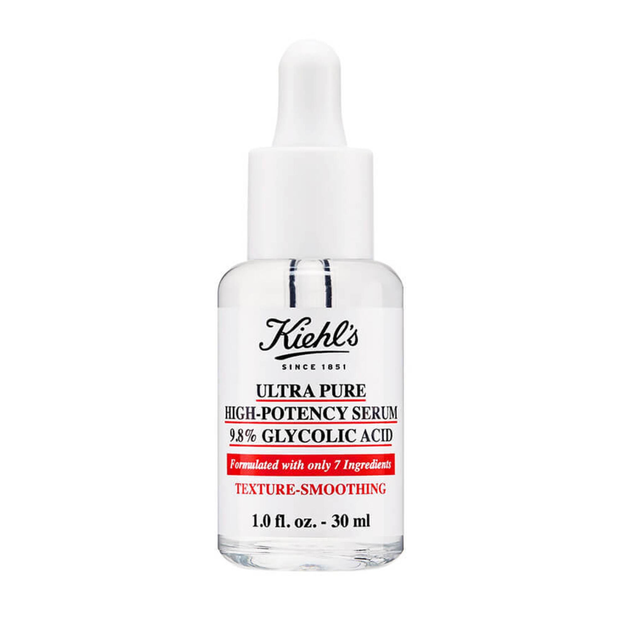 Kiehl's Ultra Pure High-Potency Serum 9.8% Glycolic Acid ist ein sanftes, exfolierendes Glykolsäure-Gesichtsserum und enthält nur sieben Inhaltsstoffe, um die Ausstrahlung der Haut sichtbar zu verbessern und das Erscheinungsbild der Poren sichtbar zu reduzieren. Unsere hochwirksame Formel mit 9,8 % Glykolsäure verfeinert die Hautstruktur sichtbar und sorgt für ein glattes, strahlendes Aussehen.
