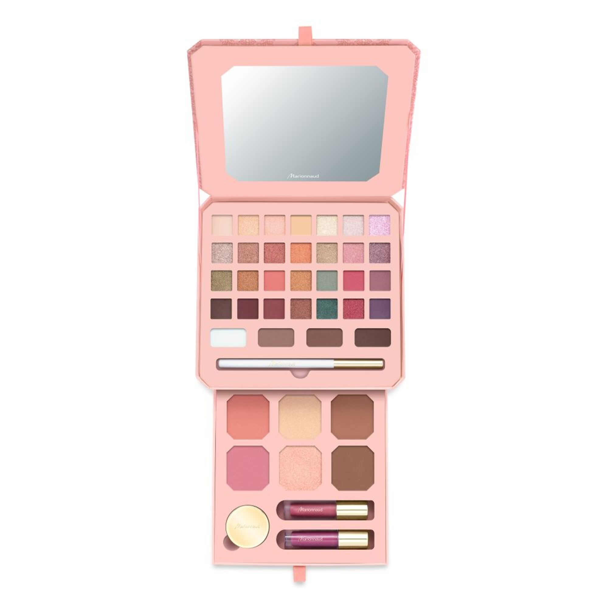 Sie haben die Wahl zwischen trendigen und gewagten Farbtönen, um Ihrer Fantasie freien Lauf zu lassen und unendlich viele Looks zu kreieren. Cette palette est composée de 28 ombres à paupières (poudreux & crèmeux), 1 cire à sourcils & 3 poudres à sourcils, 1 crayon yeux, 2 blushes, 2 bronzers, 2 enlumineurs, 1 baume à lèvres en pot, 1 laque à lèvres satinée et 1 laque à lèvres mate.Inspiriert von kostbaren Schmuckkästchen ist die Palette mit einem Spiegel und einer Schublade ausgestattet und leicht wiederverwendbar.