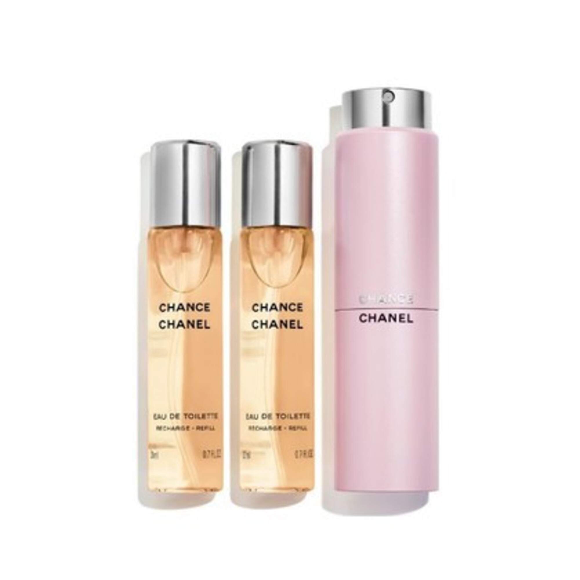 Une fragrance fleurie dans un flacon aux lignes rondes. Imprévisible, toujours en mouvement, CHANCE vous entraîne dans son tourbillon de bonheur et de fantaisie. Le vaporisateur de sac « TWIST AND SPRAY » s'emporte partout pour mieux raviver votre sillage… Un rendez-vous olfactif avec la chance.