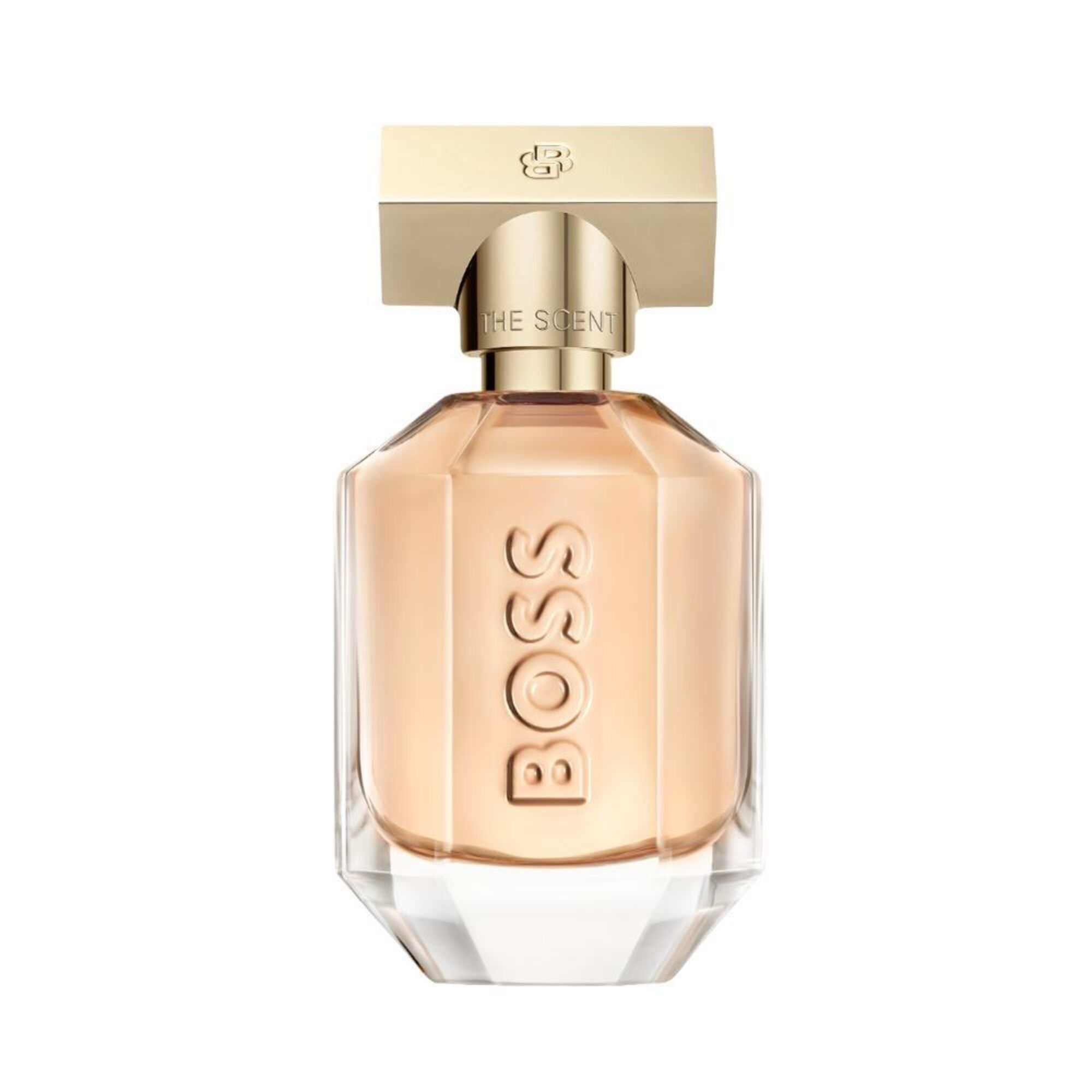 Boss The Scent réinvente la sensualité libératrice avec son flacon rechargeable en verre cristallin, mettant en avant le logo BOSS, et est surmonté d’un capuchon doré glacé orné du monogramme Double-B.