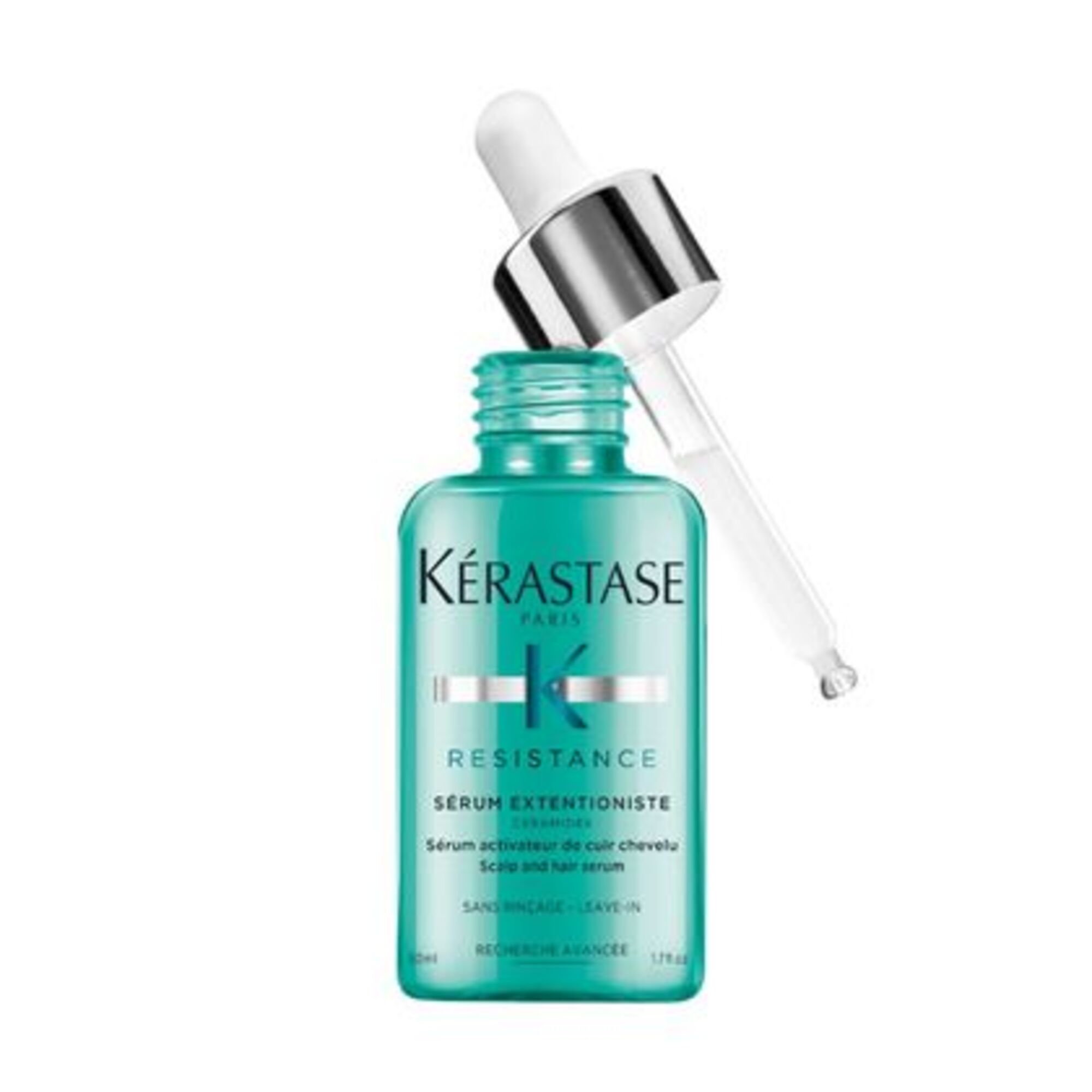 Résistance Sérum Extentioniste de Kérastase est un sérum capillaire activateur de cuir chevelu hautement concentré en ingrédients actifs, qui stimulent la croissance du follicule pileux. Sa formule sans rinçage, non-grasse, utilise le pouvoir des céramides pour protéger le cuir chevelu des agressions extérieures. Appliqué avec un massage énergisant du cuir chevelu, il est idéal pour stimuler la croissance des cheveux en racines, pour obtenir des cheveux plus longs et plus forts.