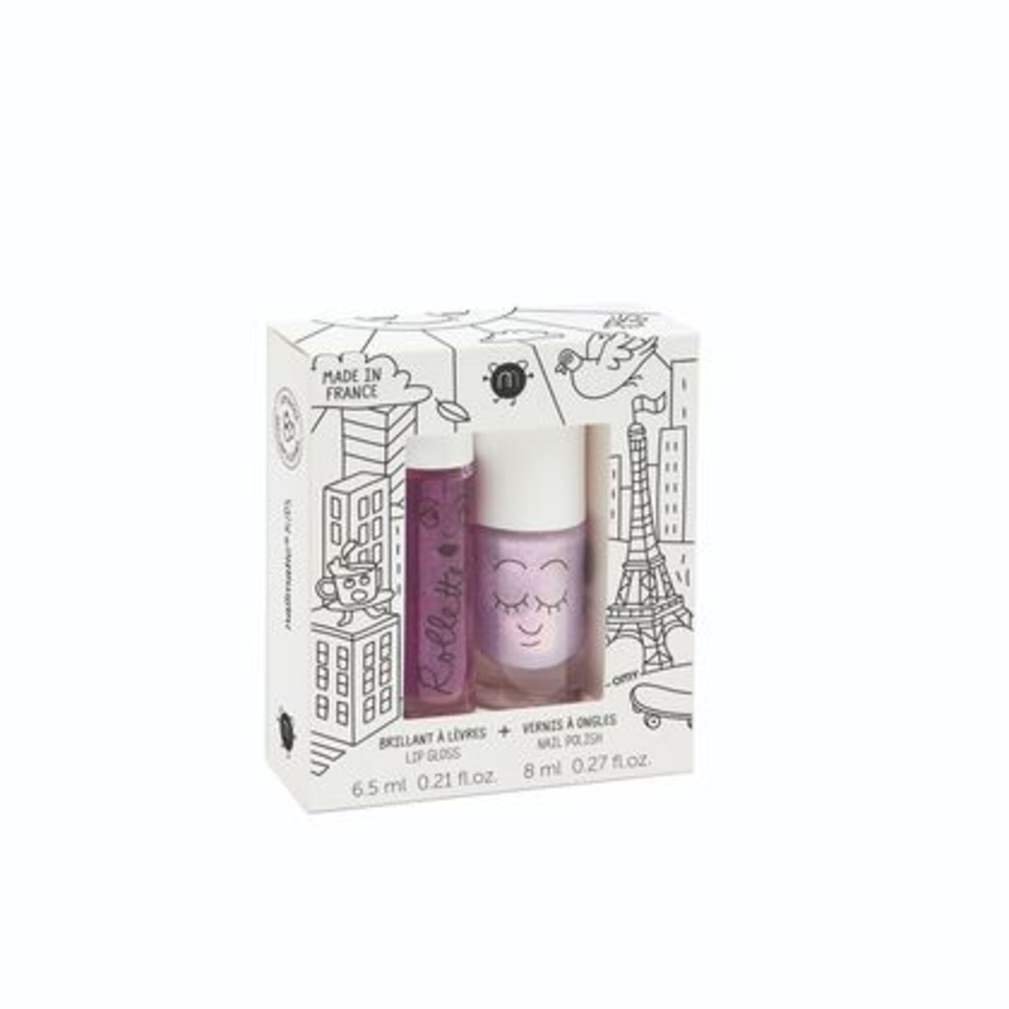 Le duo (un lip gloss + un vernis à ongles à base d’eau). Ce duo, avec un brillant à lèvres cool + un vernis à ongles, a été spécialement développé pour les enfants. Le vernis à ongles rose a été fabriqué à base d'eau et peut être facilement lavé à l'eau tiède et au savon. Le vernis à ongles est garanti sans phtalates, sans formaldehyde, sans toluene, sans parfum. Le brillant à lèvres est principalement fabriqué à partir d'ingrédients naturels tels que l'huile de noyau d'abricot, la vitamine E et les acides gras oméga 6 + 9. Le brillant à lèvres a un goût de cerise ou mûre et est transparent lorsqu'il est appliqué sur les lèvres avec l'applicateur à bille. Le soin parfait pour des lèvres douces et souples. Le vernis à ongles et le brillant à lèvres vont parfaitement ensemble, les petits amateurs de maquillage vont adorer cet ensemble! Taille de l’emballage: 10 x 8,5 cm. Contenu: 6,5 ml (brillant à lèvres), 8 ml (vernis à ongles). Goût / couleur: cassis / transparent (brillant à lèvres), rose (vernis à ongles). Sans polluant et testé dermatologiquement. Si la couleur se dépose sur le fond du flacon, cela est dû à la composition et n'est en aucun cas un signe de mauvaise qualité. Agitez simplement brièvement jusqu'à ce que les ingrédients se soient à nouveau mélangés.